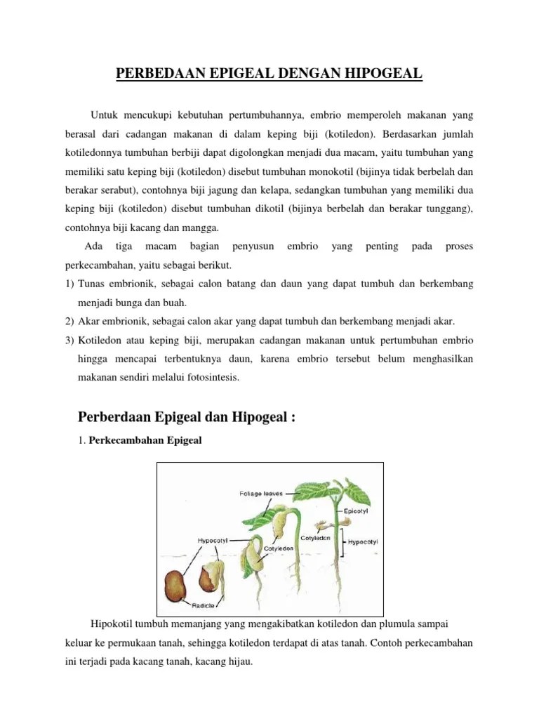 Perbedaan antara perkecambahan epigeal dan hipogeal dapat anda lihat.