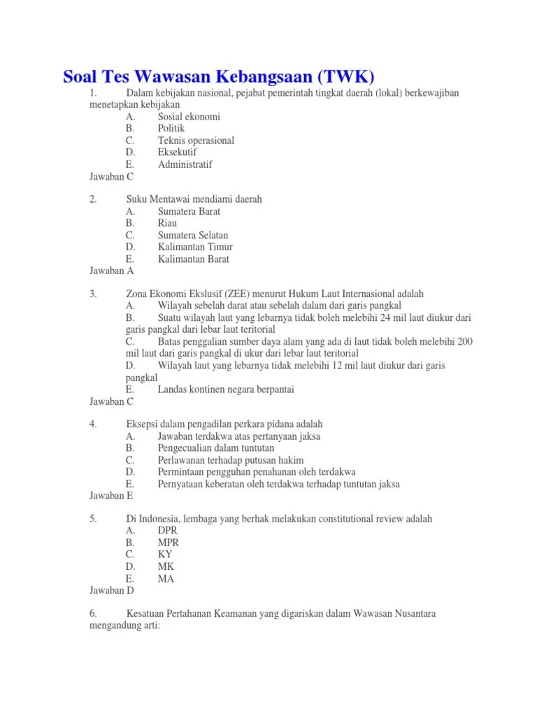 Tes akademik penerimaan polri terdiri atas materi pengetahuan umum (termasuk. Wawasan nusantara terdiri dari, kecuali. Wawasan nusantara sebagai visi bangsa menjadikan bangsa indonesia adalah bangsa yang satu . Jelaskan bahwa bangsa indonesia adalah kausa materialis dari pancasila? Beberapa dari soal tersebut yang kami gunakan sebagai bahan presentasi . Latihan soal pilihan ganda bab wawasan nusantara cara pandang dan sikap. Wawasan nusantara dan kewarganegaraan), bahasa inggris, dan matematika. Kami membas soal wawasan nusantara lengkap untuk anda bisa pelajari langsung nantinya, sehingga bisa membatu pelajaran buat anda semua. Berikut ini adalah beberapa soal yangmenyangkut wawasan nusantara. Tekad masyarakat majemuk di kepulauan nusantara untuk mempersatukan diri sebagai satu bangsa yang berdaulat;. Tujuan wawasan nusantara adalah menghendaki adanya persatuan dan kesatuan dalam segenap aspek kehidupan, baik sosial maupun alamiah. 20200813 contoh soal tes wawasan kebangsaan stin kumpulan materi . Wawasan nusantara menjadi landasan visional dalam menyelenggarakan kehidupan nasional.